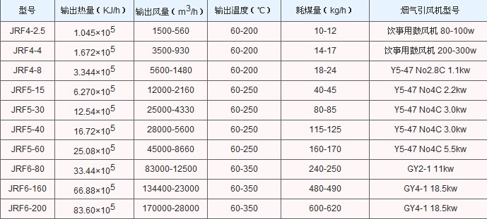 □表中熱風溫度是按輸出風量確定的。熱風爐JRF4型的熱風溫度可達到220℃,JRF5、JRF6型的熱風溫度可達300℃以上(特殊制造可達500℃以上),用戶根據需進行調整。