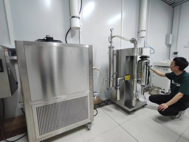 ●噴霧干燥整個實驗過程在真空環境里完成,大大降低了物料干燥溫度,解決了熱敏性物料噴霧干燥的難題