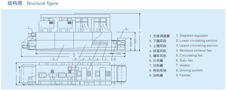 4、獨(dú)特的分風(fēng)裝置,使熱風(fēng)分布更加均勻,確保產(chǎn)品品質(zhì)的一致性。