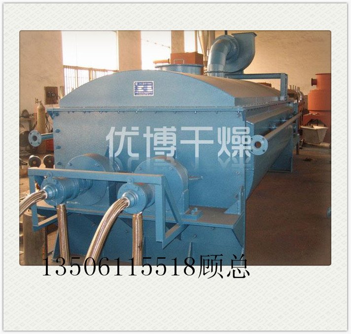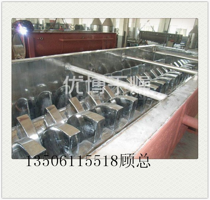 空心軸上密集排列著楔型中空漿葉,熱介質經空心軸流經漿葉。單位有效容積內傳熱面積很大,熱介質溫度從40℃到320℃,可以是水蒸汽,也可以是熱水或導熱油等。傳熱介質通過旋轉接頭,流經殼體夾套及空心攪拌軸,空心攪拌軸依據熱介質的類型而具有不同的內部結構,以保證**的傳熱效果。