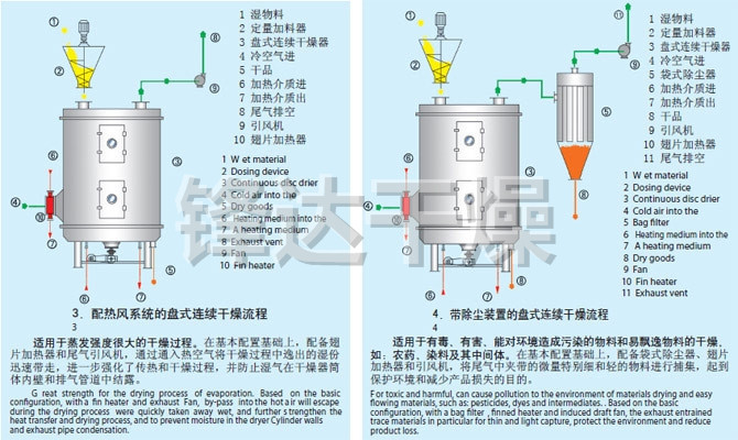 ◎加熱介質(zhì):蒸汽、熱水、導(dǎo)熱油、干燥盤溫度100℃時使用熱水加熱,100℃~150℃時用≤0.4MPa飽和水蒸汽或者過熱蒸汽加熱,150℃~320℃時用導(dǎo)熱油加熱,>320℃時可采用電、導(dǎo)熱油、熔鹽等方式加熱。