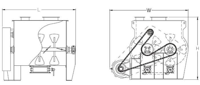 混合機根據(jù)物料性質(zhì)、啟動方式、以及攪拌方式配置不同能力、不同功率、不同輸出轉(zhuǎn)速的驅(qū)動裝置。雙軸式無重力混合機由于內(nèi)部槳葉成嚙合關(guān)系,配置的雙軸驅(qū)動動力需具備同步能力,升立公司推出四種驅(qū)動組合可用于不同的能力需求:雙齒輪箱同步組合式、單齒輪箱雙出式、雙行星齒輪同步式、過橋鏈輪鏈條式。