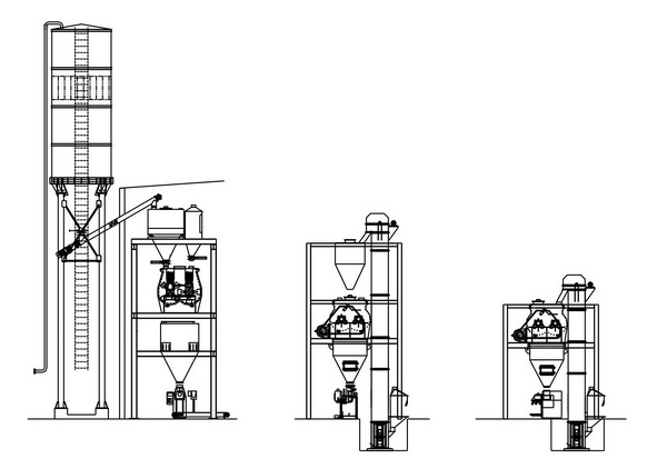 配置3:人工投料方式入無重力混合機,二次提升后進成品倉,再包裝;