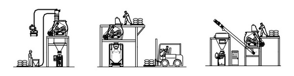 配置2:人工直接投料,配合叉車運輸,無重力混合機下接噸帶包裝機;