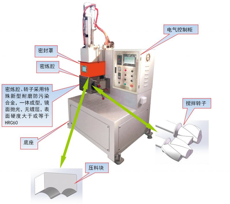 ◆ 轉子和混煉倉采用新型特殊合金材質,整體一體成型,無鍍層表面鏡面拋光處理,具有耐高溫、耐腐蝕、耐磨損、不變形和有效防止物料污染等特點
