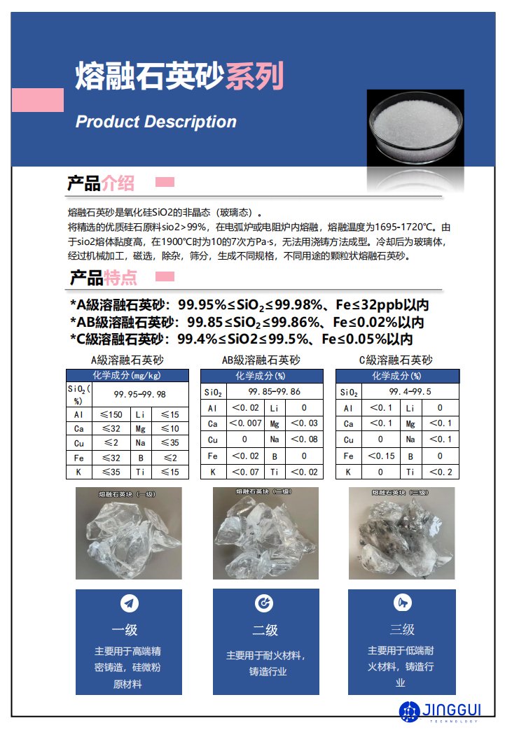 *A級熔融石英砂99.95%≤SiO2≤99.98%、Fe≤32ppb以內