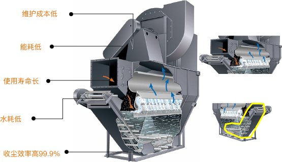 ? 多年使用僅需要*低的維護。該高效濕式收塵器不存在定期更換備品備件的情況。