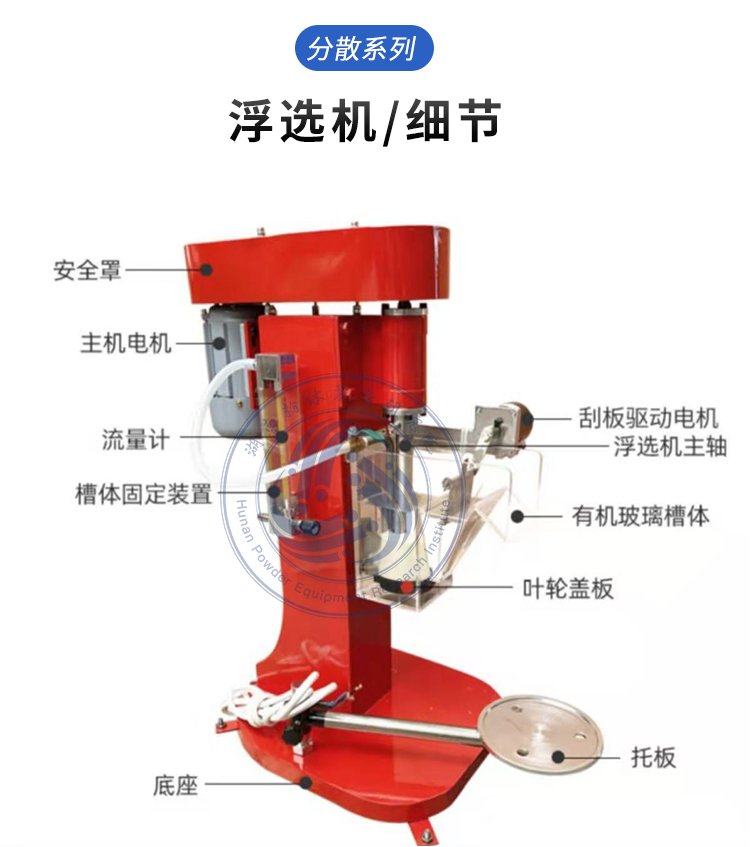 用于浮選實驗,生產實踐表明:該型浮選機結構合理,運轉平穩,工作可靠,性能達到了國外浮選機的**,適用于有色、黑色金屬及非金屬礦物的選別。該設備具有如下特點:自吸空氣,礦漿循環特性好,吸氣量相對穩定,攪拌強度適中,固體顆粒懸浮良好,液面平穩,功率消耗低。