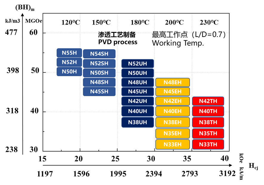 燒結(jié)釹鐵硼永磁材料相比其他磁性材料,其磁性能優(yōu)勢突出,尤其是具有高的磁能積、矯頑力和能量密度。