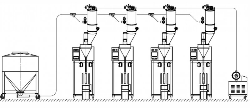 包裝機中央供料系統(tǒng)由貯料倉、真空泵、若干個真空上料機料斗、管路系統(tǒng)、控制系統(tǒng)等組成,可完成由一個供料點向多臺包裝機集中供料,自動化程度高,無粉塵污染等優(yōu)點,是制藥廠、食品廠通過“GMP”認(rèn)證,保持清潔、文明生產(chǎn)的設(shè)備。
