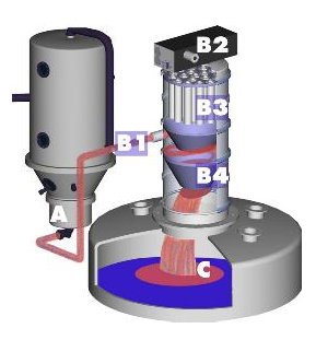 1、氣動控制器控制真空泵B2啟動,在分離倉內產生真空,迅速將空氣和物料從A(進料位置),經軟管或管子從B1(吸料口)進入到B4(真空輸送設備)中,從而達到輸送物 料的目的。