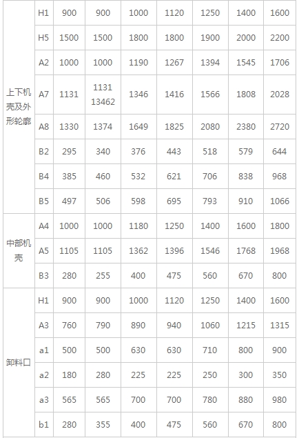 TH型環(huán)鏈斗式提升機(jī)結(jié)構(gòu)參數(shù)表: