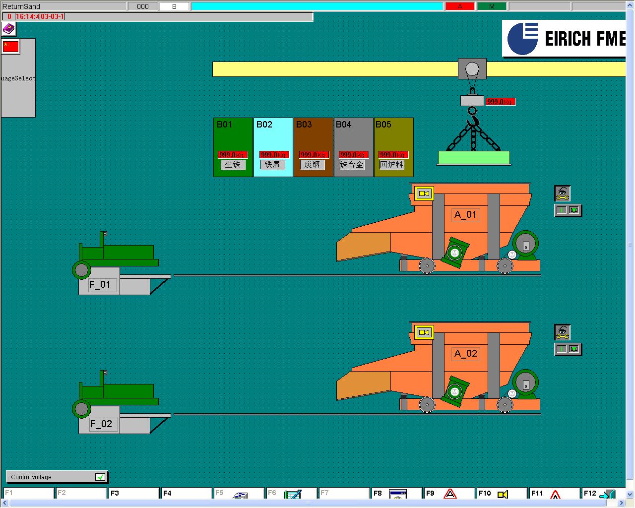 12. 可同時控制多臺不同料車、不同配方、不同行車、不同爐體的配料、加料;