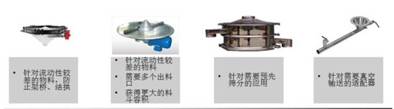 人工投料站下部常連接:旋轉卸料閥,碟閥,插板閥,粉體計量閥,插板閥,真空上料機,真空輸送機,螺旋輸送機,換向閥,料斗,料倉等設備