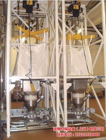 噸包拆包站、噸包卸料站可與電動葫蘆相連,噸裝袋用電動葫蘆提升到卸料口上,人工解開噸裝袋下的卸料口,打開光圈閥,噸裝袋內的物料靠自身重力落入儲料斗,可以通過振打器或按摩器促使下料,此操作簡單、便捷。應用于塑料及塑料添加劑、混合劑、污水處理澄清劑、水泥等干燥的粉沫、顆粒物料、粉粒混合物、片狀物料的拆包場合。不同種類的卸料設備,適用于不同種類的物料場合,其機構視物料的特性、噸裝袋的結構、噸裝袋的外形尺寸以及起吊工作的種類而定。